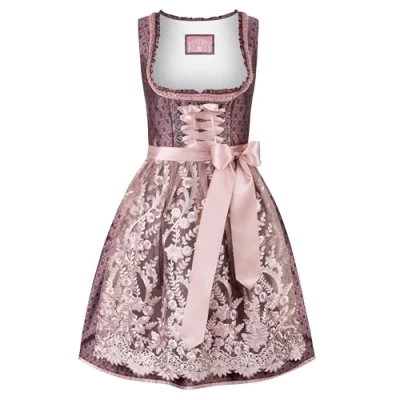 Dirndl Palina for women by Wiesnwuid in burgundy. The elegant dirndl impresses with the trendy jacquard pattern and is decorated with loving details. The incorporated ruffles on the round neckline, the sewn-on decorative borders and the decorated bodice hooks in antique silver ensure the feminine touch. The filigree, colour-coordinated lace apron creates a special look. The lacing made of a colour-matching satin ribbon underlines the elegant design. An absolute highlight for any dirndl wearer. Combination partner: Dirndl blouse Jasmine in white. Women's Dirndl Palina Dress Brand: Stockerpoint