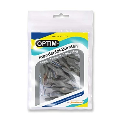 The OPTIM interdental brushes have a high tensile strength, a wire made of stainless steel, are strong, flexible and durable. The brush can be individually bent if needed to clean hard to reach areas. Avoid repeated bending and an angle of more than 45 degrees. Interdental spaces are easily cleaned with the OPTIM interdental brushes. Thanks to the wide range of different sizes, Optimal interdental brushes fit into almost every tooth space. Available in a practical pack of 8, pack of 16 or pack of 25.
