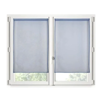 STOF Pair of Half Curtains Size 70 x 200 cm 100% Polyester Denim Colour Monna Model Glazed Privacy and Transparency Plain