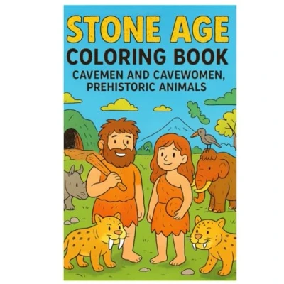Stone Age Coloring Book Cavemen And cavewomen Prehistoric Animals Shapes