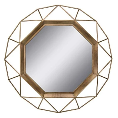 Measuring at 28.3" diameter with gold frame and 17.2" diameter for the mirror alone, this elegant mirror is the perfect size for a vanity or accent mirror Stonebriar's stylish mirror features a unique geometric wire metal frame with an antique gold finish & an octagon mirror with crystal clear reflection Gold frame mirror for wall comes with 2 attached keyhole mounting brackets and is easily installed with 2 screws (hardware not included) This stylish and eye-catching decor piece is the perfect addition to your bathroom, living room, bedroom, office, and entryway Buy your Stonebriar gold geometric wall mirror for yourself or give it as a thoughtful birthday, wedding, or housewarming gift for friends and family