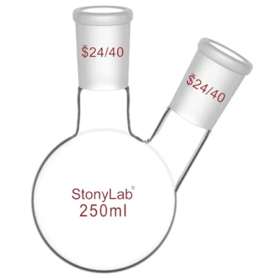 StonyLab Borosilicate Glass 2 Neck Round Bottom Flask RBF, with 24/40 Center and Side Standard Taper Outer Joint 250ml