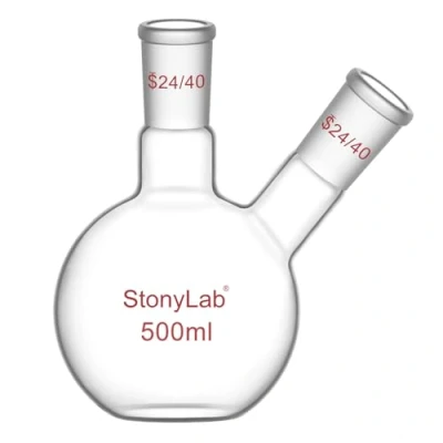 Versatile Functionality: 2-neck flat-bottom flask is indispensable in chemical experiments, designed to enhance the ease of adding reactants and measuring temperatures during various reactions Diverse Capacity and Standardization: Available in 50/100/250/500/1000/2000 ml, each flask is equipped with 2 standard 24/40 joint, catering to a variety of experimental needs Superior Craftsmanship: crafted with meticulous attention to detail, these flasks boast a smooth surface, high transparency, and are free from imperfections like bubbles, ensuring precision in every experiment Robust Material: constructed from high borosilicate glass, these flasks are not only resistant to acids and alkalis but also offer excellent corrosion resistance; their durable nature allows for repeated reuse, making them a sustainable choice for ongoing research and experimentation; maximum withstand temperature 200°C Warranty: StonyLab 1-year limited warranty; if received damaged, please contact us immediately; we will solve it until satisfied