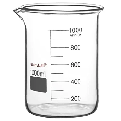 1 pack 1000ml Graduated Griffin low form beaker with pouring spout Convenient to be used for both for lab and daily use G3.3 Borosilicate glass with good light transmission and low thermal expansion coefficient; heatable and reusable; maximum withstand temperature 200°C Clear scale; easy to observe and read; accurate to within 5 percent Warranty: stonylab 1-year limited warranty; if received damaged, please contact us immediately; we will solve it until satisfied