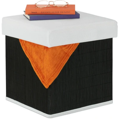 Stool with Storage, Padded, Folding, Bamboo & Fabric, HxWxD: 35 x cm, Sofa Footstool, Black/White Relaxdays