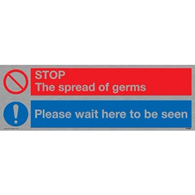 STOP germs PLEASE wait here to be seen sign Stainless Steel 1mm