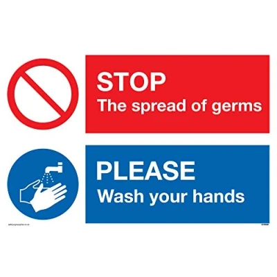 STOP germs PLEASE wash your hands sign Plastic Rigid 3mm