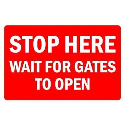 Stop here wait for gates to open safety sign 1mm flexible Plastic (300mm x 200mm)