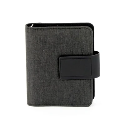 The Stop Ocean Plastic RPET system planner DIN A7 CEBU is made from recycled PET nylon fibres. Sustainable production promotes environmental protection by less plastic in the oceans The folder features a magnetic closure for secure hold and an integrated A7 calendar layout for optimal everyday organisation Environmentally friendly A7 calendar folder: convenient for travel, with space for notes and protection of the seas thanks to recycled material PERFECTLY ORGANIZED 3 business card slots and a slip pocket provide space for cards and documents, all compact and within easy reach System planner with magnetic closure, external dimensions: 11.5 x 14 x 3 cm, format: DIN A7, material: recycled PET, weight: 0.2 kg, colour: anthracite, item no. : 17300, EAN: 4021068073009