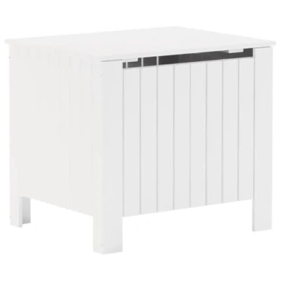 ManoManoGeneral description This wooden storage box is an ideal storage solution and makes a great decorative addition to your living space. Made of solid pine wood, it features a beautiful natural finish with a straight grain and rustic knots. The ample storage space allows you to keep clothing, blankets, toys, cushions, and other daily essentials well-organized. The slatted design ensures good ventilation for the items inside, while the hinges make it easy to open and close the lid. Technical specifications Material: Solid pine wood Colour: White Dimensions: 60 x 49 x 54 cm (L x W x H) Assembly required: Yes Range name: RANA Other information