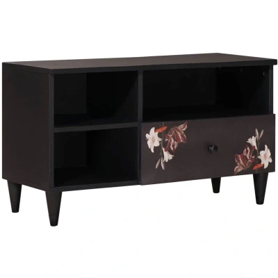 This elegant media storage cabinet extends a perfect blend of form and function for indoor living spaces, particularly in living rooms where style and functionality harmoniously meet. Its sleek rectangular design showcases a modern aesthetic characterized by simplicity and functionality, making it an ideal addition to contemporary interiors. With a multicolored finish, the cabinet provides an eye-catching focal point while offering substantial media storage and display options. Material Excellence: Crafted from solid mango wood and engineered wood, this media storage cabinet blends charming aesthetics with robust strength. The combination ensures long-lasting durability while providing a sophisticated touch to complement any modern interior. Artistic Elements: Adorned with a unique floral pattern, this cabinet adds a decorative flair that elevates the overall aesthetic of your living space. The engraving enhances the cabinet's visual appeal, making it a centerpiece in the room. Functional Design: With sleek brass knobs and a door for storage, it balances aesthetics with practicality. The innovative design allows easy access to media while keeping wiring and peripherals neatly organized and out of sight. Perfect Fit: Sized at 80 x 33.5 x 46 cm, this cabinet offers compact, yet ample storage, perfect for smaller urban living spaces or as a stylish addition to larger rooms. Its calibrated dimensions offer flexibility to fit diverse environments seamlessly. Minimal Maintenance: Keep the cabinet looking new by wiping it with a dry cloth. Its low-maintenance structure ensures it remains a polished element of your home decor effortlessly.