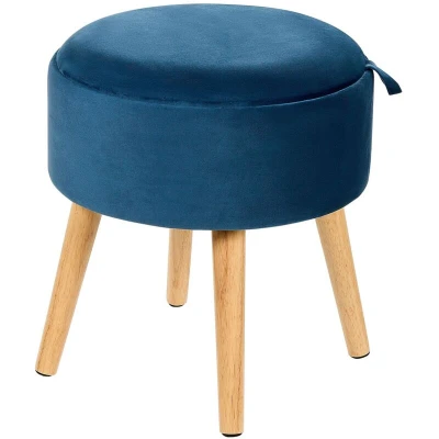 General description Indulge in everyday luxury with the NEELY Velvet Navy Blue Storage Stool. This accent footstool features a soft, plush surface that invites relaxation, while its versatile tray top allows it to function as a small table for daily needs. With warm, light wood legs, it seamlessly blends into your living room or bedroom decor, elevating your everyday living with a perfect combination of style and practicality. Technical specifications Product Type: Stool Style: Glam General Color: Navy Blue Main Material: Velvet Additional Material: Rubberwood Filling Material: Foam Material Composition: 100% Polyester Shape: Round Pattern: Solid Seat Foam Density: 30 kg/m3 Storage: Yes Dimensions: Depth: 39 cm, Width: 39 cm, Height: 43 cm Seating Surface: 39x39 cm Weight: 4 kg Weight Capacity: 150 kg Installation Assembly Information: Legs to be fitted Estimated Assembly Time: 15 min Usage Very Comfortable Perfect for Both a Bedroom and a Living Room Elegant Design High-Quality