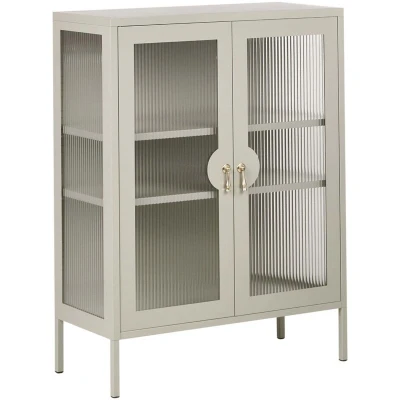 Office Cabinet with Fluted Glass Doors. This metal cabinet combines high-quality materials with a design that fits a variety of uses. The sturdy steel construction provides stability, while fluted glass fronts introduce a refined accent that catches the eye. With generous shelving for organising documents or household items, this cabinet is a dependable choice for a variety of interiors, home office and living room or hallway alike. Details: Product Type: Office Cabinet Style: Glam General Color: Beige Shade: Light Beige Material Type: Metal Main Material: Steel Additional Material: Zinc Alloy Legs material: Metal Shelves number: 3 Doors Opening: Standard Drawers: No Finish: Powder Coated Key Locked: No Number of Doors: 2 Shelves: Yes Dimensions: Depth: 35 cm Width: 80 cm Height: 105 cm Weight: 25 kg Shelf Weight Capacity: 20 kg Top Weight Capacity: 30 kg Offer Includes: 1 x Storage Unit Key Features: Great for Industrial Interiors, Stable and Durable Construction, Ideal for Home and