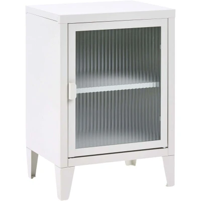 Office Cabinet with Fluted Glass Door. Add functional style to your home or office with this chic storage unit. Constructed from durable powder-coated steel, this cabinet ensures lasting stability and features a clean, modern aesthetic. The door is fitted with trendy fluted glass, offering a visual appeal while subtly hiding the contents within. Perfect for organising documents, this piece blends practicality with sophisticated design. Details: Product Type: Office Cabinet Style: Minimalist General Color: Grey Shade: Light Grey Material Type: Metal Main Material: Steel Additional Material: Glass Legs material: Metal Shelves number: 2 Doors Opening: Standard Drawers: No Finish: Powder Coated Key Locked: No Number of Doors: 1 Shelves: Yes Dimensions: Depth: 30 cm Width: 40 cm Height: 57 cm Weight: 7 kg Offer Includes: 1 x Storage Unit Key Features: Modern Design, Great for Industrial Interiors, Stable and Durable Construction, Ideal for Home and Office Workspace, Leg Caps for Surface