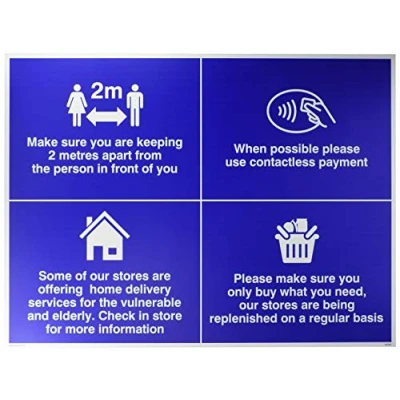 Store sign, social distancing, stock, local delivery, contactless payment