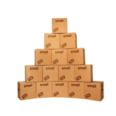 MADE WITH STRONG CARDBOARD - These boxes are made from high grade materials so they are durable, they can be used multiple times and sturdy enough to be stacked on top of each other when being stored. UK MADE WITH 100% RECYCLED CARD - FSC certified cardboard using water based inks make our sustainable boxes 100% recyclable. We are also committed to using a minimum of 30% recyclable plastic in our outer wrap. EASY TO USE – These robust boxes come flat packed which are easy to set up and break down until ready for the next use. The two integrated handles ensure easy and comfortable lifting. RECOMMENDED PACKING USE - Perfect for packing up for a house move, suitable for storage and stacking of home or office items. BOX DIMENSIONS AND CAPACITY - Pack of 15 Small storage boxes have external dimension of H 35cm x W 35 cm x D 25cm when built and an internal capacity of 31 litres.