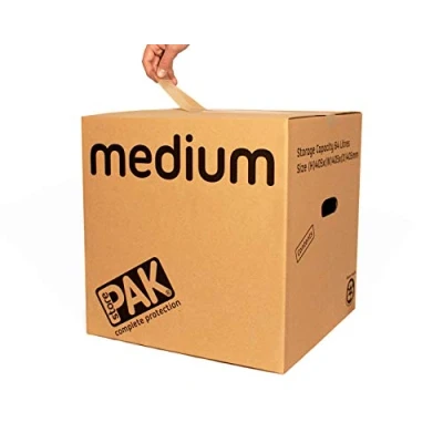 MADE WITH STRONG CARDBOARD - These boxes are made from high grade materials so they are durable, they can be used multiple times and sturdy enough to be stacked on top of each other when being stored. UK MADE WITH 100% RECYCLED CARD - FSC certified cardboard using water based inks make our sustainable boxes 100% recyclable. We are also committed to using a minimum of 30% recyclable plastic in our outer wrap. EASY TO USE – These robust boxes come flat packed which are easy to set up and break down until ready for the next use. The two integrated handles ensure easy and comfortable lifting. RECOMMENDED PACKING USE - Perfect for packing up for a house move, suitable for storage and stacking of home or office items. BOX DIMENSIONS AND CAPACITY - Pack of 7 Medium storage boxes which have an external dimension of H 40.5cm x W 40.5 cm x D 40.5cm when built and an internal capacity of 64 litres.