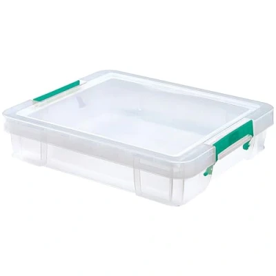 Heavy duty storage for the home, office or warehouse Reinforced base and corners for extra strength Handles clip the included lid securely in place Stackable, with or without the lid Capacity: 9 litres