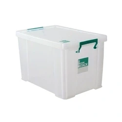 Storage box for the home, office, or warehouse Reinforced base and corners for extra strength Handles clip the included lid securely in place Stackable, with or without the lid Capacity: 2.6 litre Ideal for stationery and craft items Colour: clear Dimensions: W240 x D130 x H140mm