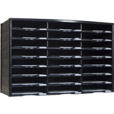 This product is made from 100% post-consumer waste Label holder on each compartment Snap and stack up to 72 compartments at a time - Sold in 12-compartment sets Easy assembly no tools required Rubber feet to protect surfaces underneath