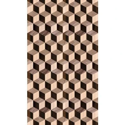WallpaperDirectThis wall mural showcases a geometric, cube-like optical illusion pattern created from wooden tones in a mix of light, medium, and dark shades. The design creates a striking 3D effect, adding depth and texture to the space. This mural is supplied as 3 drops on a 53cm wide roll. Once installed the mural covers 1.59 x 2.8 meters. It is repeatable side-to-side as required.