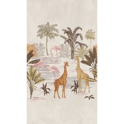 WallpaperDirectA vibrant mural depicting a lush jungle oasis where pink flamingos and graceful giraffes wander amidst dense, leafy greenery. Perfect for a child’s room yet versatile enough to add exotic charm to any space in the home. This mural is supplied as 3 drops on a 53cm wide roll. Once installed the mural covers 1.59 x 2.8 meters. It is repeatable side-to-side as required.