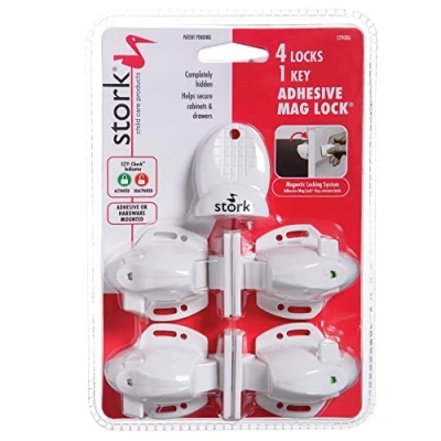 Stork Child Care Products Adhesive Magnetic Lock Proofing Cabinet Latches 4 Packs & 1 Key Model ST9086