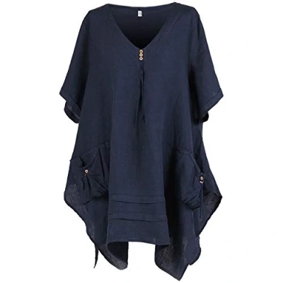 Storm Island DT006 Italian Ladies Quirky Linen Tunic Top Women Turn Up Buckle Sleeves Lagenlook (Navy, ONE Size UK 14 24)