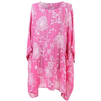 Storm Island Italian Ladies Floral Batwing Sleeve Top Women Lagenlook Tunic Cotton Shirt Plus (Fuchsia, 22 24 UK)