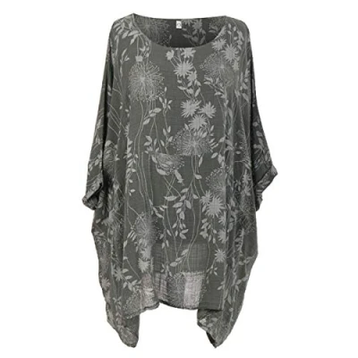 Storm Island Italian Ladies Floral Batwing Sleeve Top Women Lagenlook Tunic Cotton Shirt Plus (Grey, 22 24 UK)