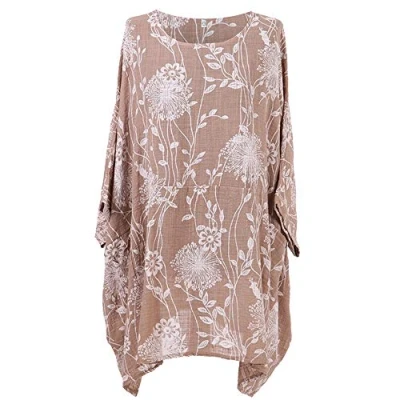 Storm Island Italian Ladies Floral Batwing Sleeve Top Women Lagenlook Tunic Cotton Shirt Plus (Mocha, 22 24 UK)