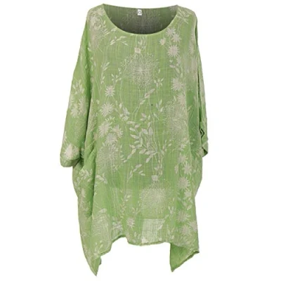 Storm Island Italian Ladies Floral Batwing Sleeve Top Women Lagenlook Tunic Cotton Shirt Plus (Sage, 14 16 UK)