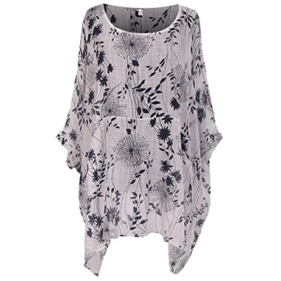 Storm Island Italian Ladies Floral Batwing Sleeve Top Women Lagenlook Tunic Cotton Shirt Plus (White, 22 24 UK)