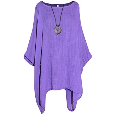 Storm Island Italian Ladies Plain Top Womens Lagenlook Tunic Batwing Shirt with Necklace SI093 (Purple, One Size Fits UK (18 26))