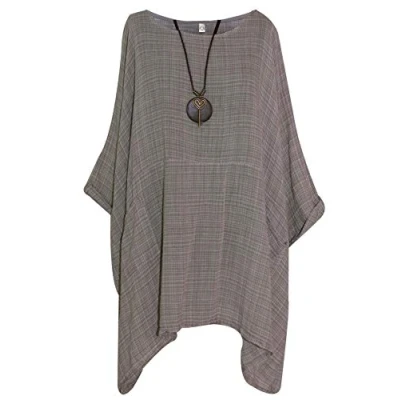 Storm Island Italian Ladies Plain Top Womens Lagenlook Tunic Batwing Shirt with Necklace SI093 (Taupe, One Size Fits UK (18 26))