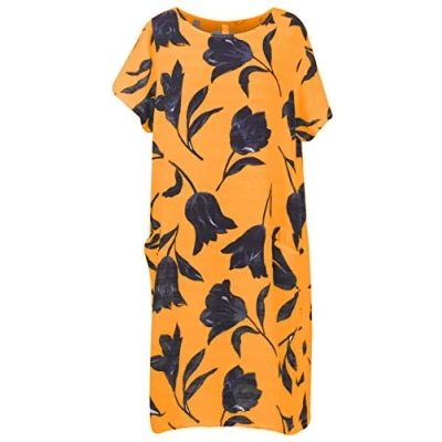 Storm Island Italian Ladies Printed Long Dress Tunic Women Cotton Short Sleeve Shirt Top (Orange, One Size UK 14 22)