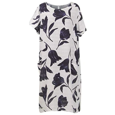 Storm Island Italian Ladies Printed Long Dress Tunic Women Cotton Short Sleeve Shirt Top (White, One Size UK 14 22)