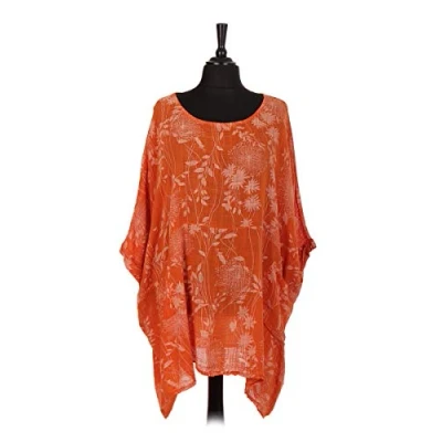 Storm Island® Italian Ladies Top Quirky Cotton Floral Print Women Summer Shirt Boho Pocket Tunic Hi Low Dress Plus Size for Fashion Party Orange
