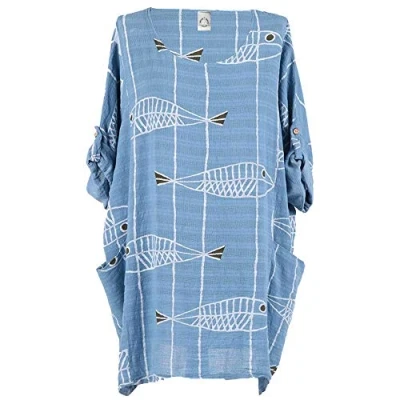 Storm Island Italian Ladies Tunic Top Womens Quirky Tartan Print One Size Lagenlook Dress (Fish Denim, Fit 12 24 UK)