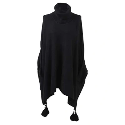 Storm Island Italian Plain Ladies Poncho Cowl Neck Batwing Sleeves Tassels Knitted Tunic (Black, One Size: (UK Fit 18 32))