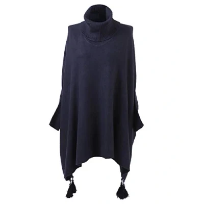 Storm Island Italian Plain Ladies Poncho Cowl Neck Batwing Sleeves Tassels Knitted Tunic (Navy, One Size: (UK Fit 18 32))