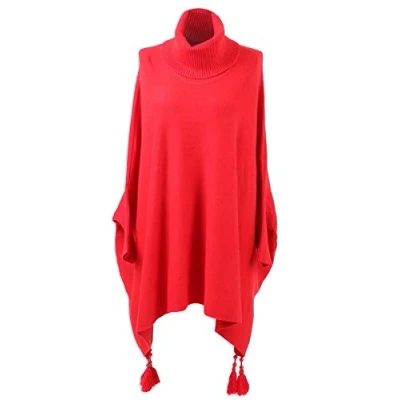 Storm Island Italian Plain Ladies Poncho Cowl Neck Batwing Sleeves Tassels Knitted Tunic (Red, One Size: (UK Fit 18 32))