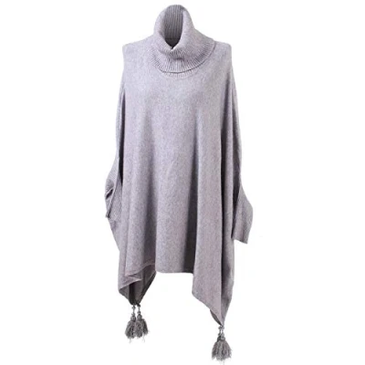Storm Island Italian Plain Ladies Poncho Cowl Neck Batwing Sleeves Tassels Knitted Tunic (Silver, One Size: (UK Fit 18 32))