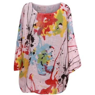 Storm Island® Italian Tops for Women Tunic Top Ladies Plus Size Summer Cotton Shirt Fashion Blouse UK (12 22) Pink