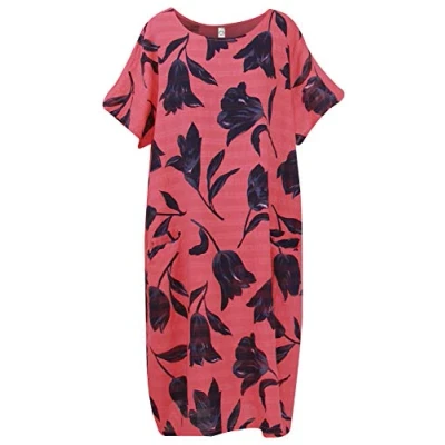 Storm Island Ladies Dress Tulip Print Womens Lagenlook Cotton Shirt Top Front Pockets Tunic SI111 (Coral, One Sie UK 10 18)