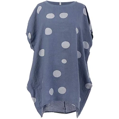 Storm Island Ladies Italian Linen Spotty Dress Womens Polka Dots Tunic Top One Size Denim