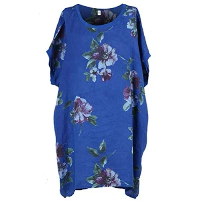Storm Island Ladies Italian Linen Spotty Dress Womens Polka Dots Tunic Top One Size (Floral: Royal Blue, UK 18 26)