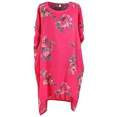Storm Island Ladies Italian Linen Spotty Dress Womens Polka Dots Tunic Top One Size Fuchsia
