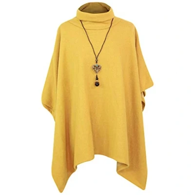 Storm Island Ladies Italian Poncho Cowl Neck top Winter Warm Moher Women Plus Size Fashion (Mustard, One Fit for 12 26 UK)