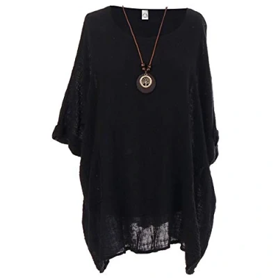 Storm Island Ladies Italian Quirky Cotton Top Womens Lagenlook Plain Summer Tunic Dress (Black, 18 20 UK)